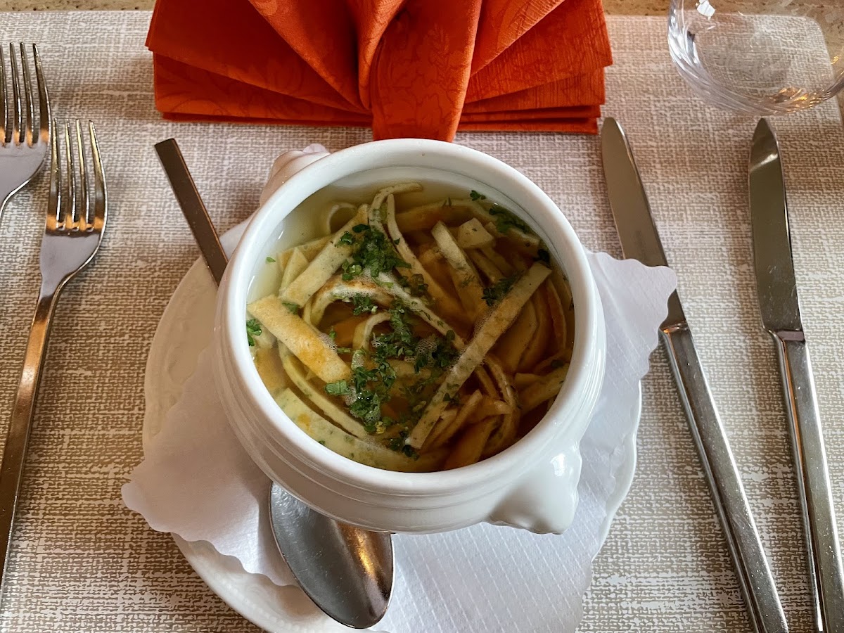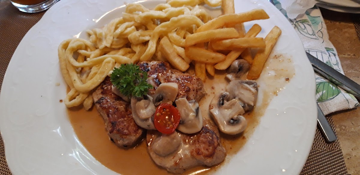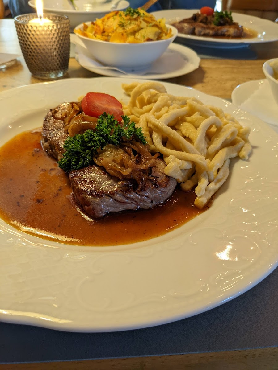 Nice Bauernrostbraten (Steak) with herbed butter and a lovely portion of Kren (horse radish). Two pieces or roasted Bauernbrot completed this lovely meal. Swift and friendly service.